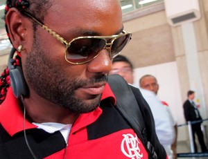 Love concede entrevista no desembarque do Flamengo (Foto: Janir Júnior / Globoesporte.com)